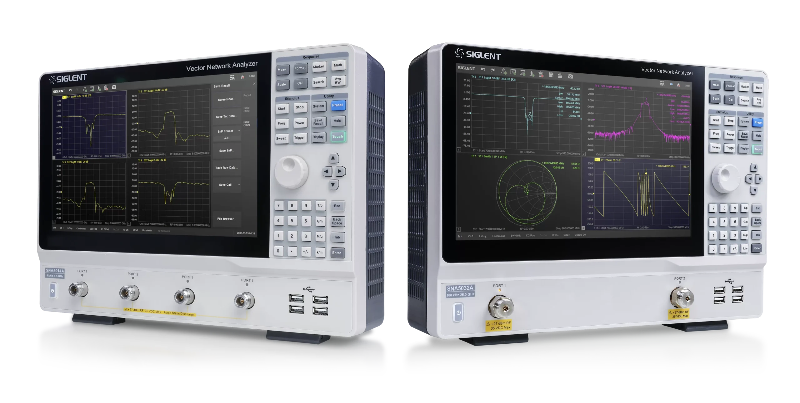 SIGLENT Vector Network Analyzers (VNAs) have a frequency range of 9 kHz to 8.5 GHz and 100 kHz to 26.5 GHz, with 2/4-port models that can quickly deliver reliable scattering, differential, and time-domain parameter measurements.